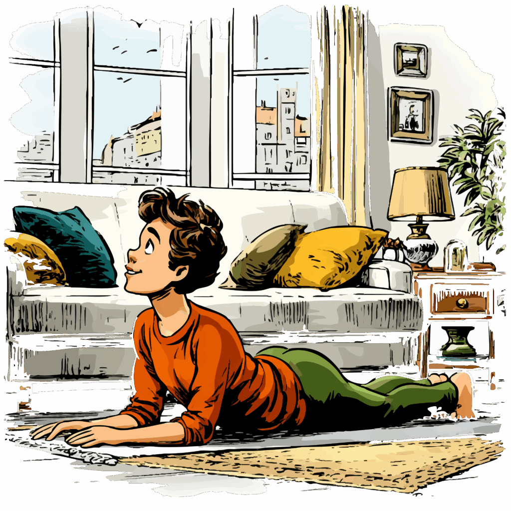 Nepotřebuješ podložku. Stačí gauč a chuť něco udělat se svým tělem bez zbytečného hrdinství. Lehni si na břicho, opři se o předloktí a lehce zvedni hrudník. Krk zůstává volný, dech klidný. Tohle je verze kobry, kterou zvládneš i po celodenním scrollování. Uvolní ti záda, otevře hrudník a připomene tělu, že není kancelářská židle. Zůstaň, dýchej a pozoruj, jak se všechno pomalu vrací na své místo.