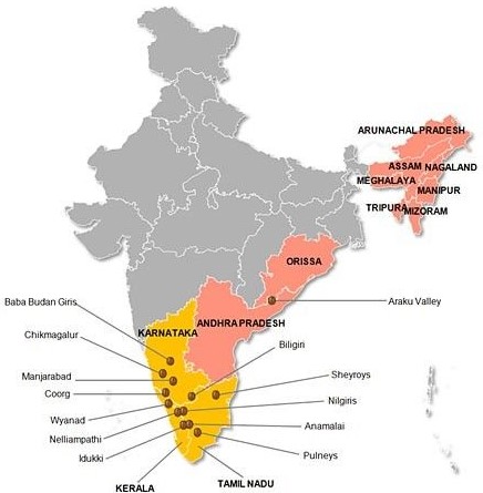 Chikmagalur je nejikoničtější kávový region Indie a domov některých z jejích nejstarších plantáží. Je to právě zde, kde před více než 300 lety zasadil Baba Budan první kávová zrna. Káva tu roste ve stínu tropických stromů v bohatých červených půdách, které jsou ideální pro pěstování arabiky. Chuťově se místní kávy vyznačují středním tělem, nízkou aciditou a tóny tmavé čokolády, tabáku, zralého ovoce a koření. Region má dlouhou tradici promytého zpracování, ale i zde se začíná experimentovat s naturálními metodami.